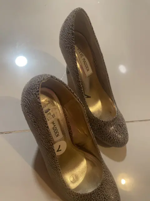 Zapatos de tacón cafés steve madden. Preciosos zapatos de tacón café con dorado de ante una sola puesta