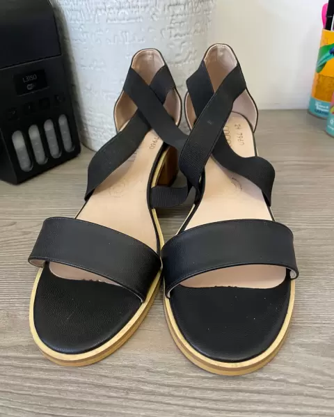 Hermosas sandalias color negro, marca Felipe Rentería, el tacón mide 5cm, talla 24, están nuevas el único detalle es que la tapa de un tacón es ligeramente más clara que la otra