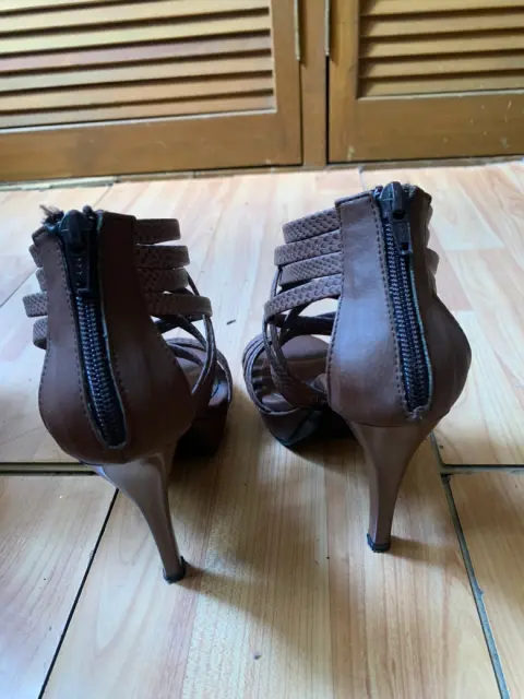 Zapatos de tiras. Zapatillas con plataforma de 2 cm aprox y tacón 10Cm. El estilo es cómo piel de víbora. Cómodos y elegantes