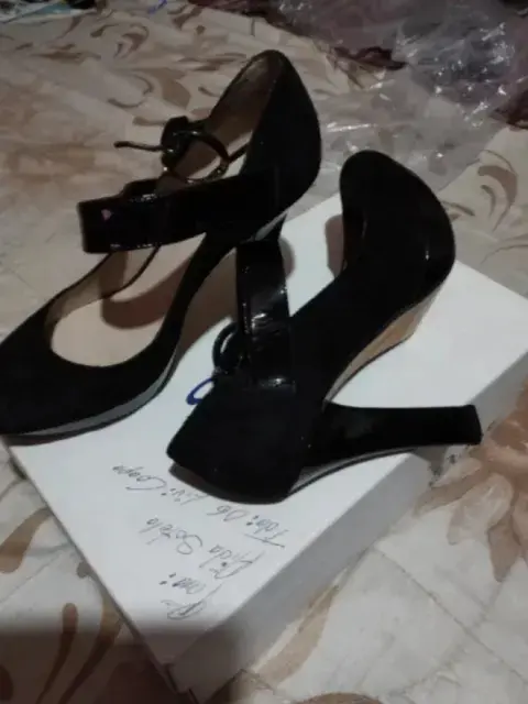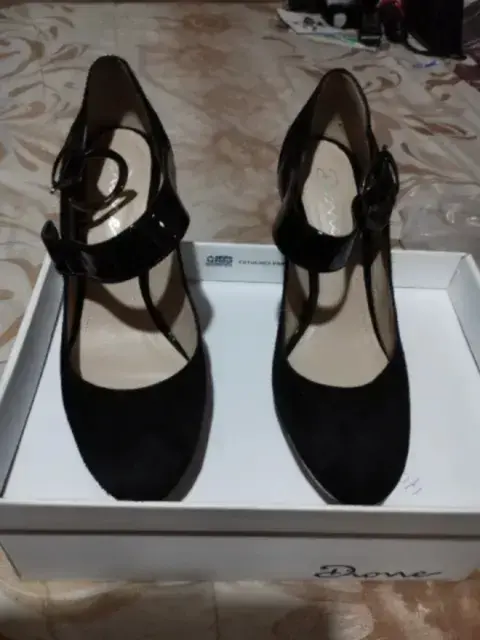 Zapatos Dione, 100%cuero, exterior terciopelo y correas y tacones en charol 10cm , plataforma 2cm , buen estado.