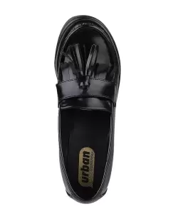 Zapatos escolares. Zapato de tacón ancho, negro, elaborado tipo piel acabado charol, color negro, plantilla 100% piel porcino, suela antideslizante