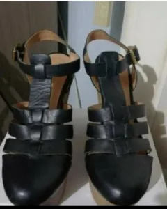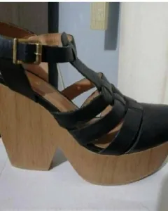 Zapatos estilo vintage con plataforma muy cómodos, color negro combinado con tacon de color natural, número 25 no tiene ningún detalle.