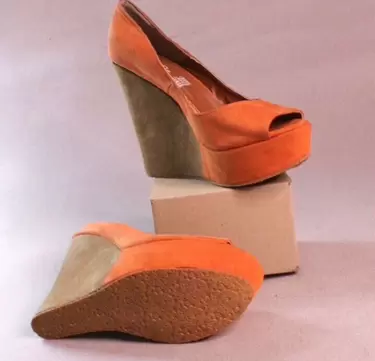 Zapatos naranja con café, tipo ante de tacón completo nuevos talla 5 a estrenar, súper lindo. Y fáciles de combinar con diversos looks.