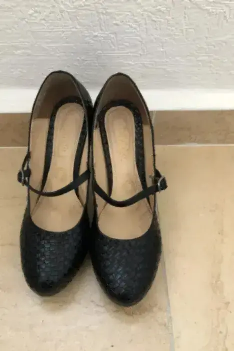 Bonitos zapatos negros con cinta, talla 6. Tienen pocas puestas y están en buenas condiciones.Altura del tacón 11cm