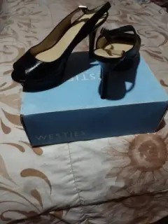 Zapatos nine west negros. Zapatos en piel, destalonados , correas ajustables , usados , tacones 9cm , plataforma 2cm ,