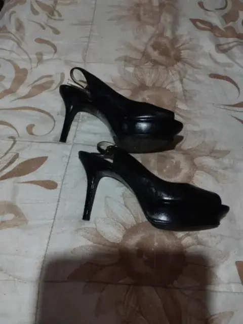 Zapatos en piel, destalonados , correas ajustables , usados , tacones 9cm , plataforma 2cm ,