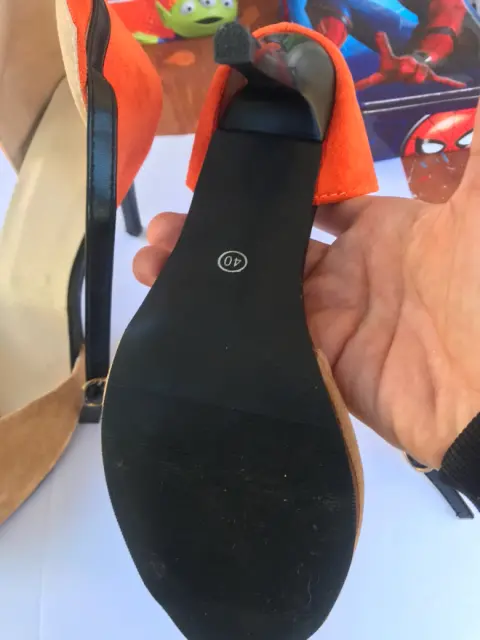 Zapatilla estileto de gamuza , beige con naranja , hermosos sin usar