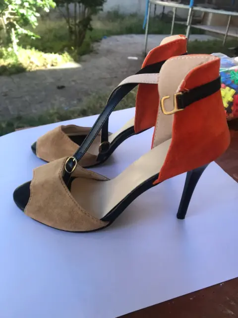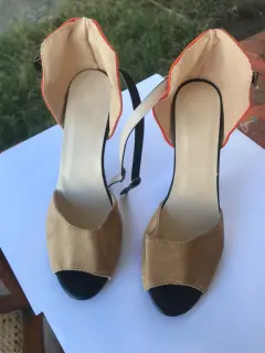 Zapatos nuevos Sin usar nuevos. Zapatilla estileto de gamuza , beige con naranja , hermosos sin usar