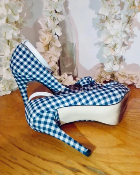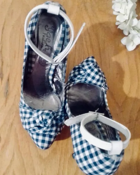 Zapatillas mascota azul marino con blanco. El tacón es de 11cm, es super cómodo porque tiene una plataforma interna de 2.5 cm, lo que lo hace en realidad un tacón de aprox. 9 cm SUPER CÓMODOS. Con cintos blancos al tobillo✨♡♡DISPONIBLE PARA ESTAR EN TU CLOSET♡♡✨