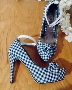 Zapatos Pin Up mascota. Zapatillas mascota azul marino con blanco. El tacón es de 11cm, es super cómodo porque tiene una plataforma interna de 2.5 cm, lo que lo hace en realidad un tacón de aprox. 9 cm SUPER CÓMODOS. Con cintos blancos al tobillo✨♡♡DISPONIBLE PARA ESTAR EN TU CLOSET♡♡✨