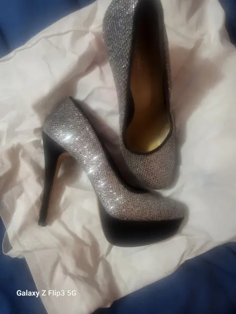 Zapatos plataforma. Zapatos de fiesta talla 5 color plata con negro