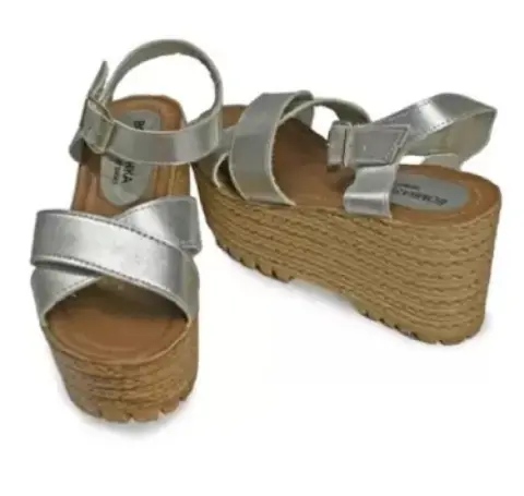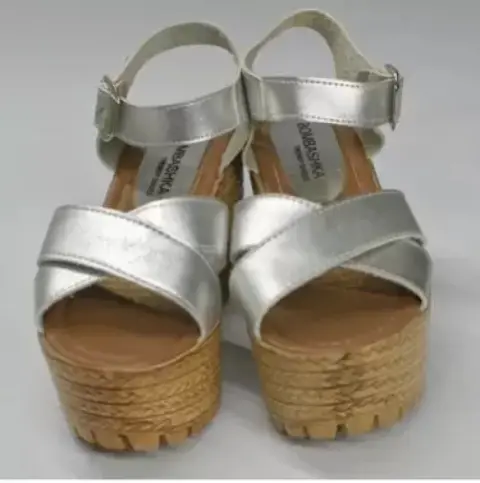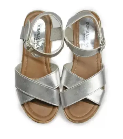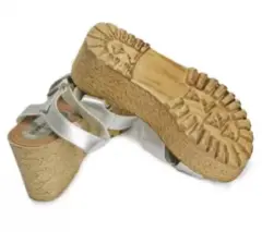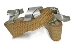 Zapatos plataforma plateados talla 22, con pulsera para el tobillo, la suela es plástica, súper lindos y coquetos.