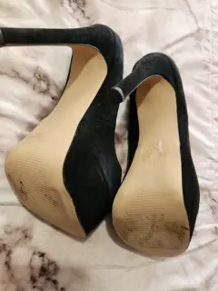 Zapatos steve maddren, negros de gamuza talla 5.Tacon número 16 peep toe.