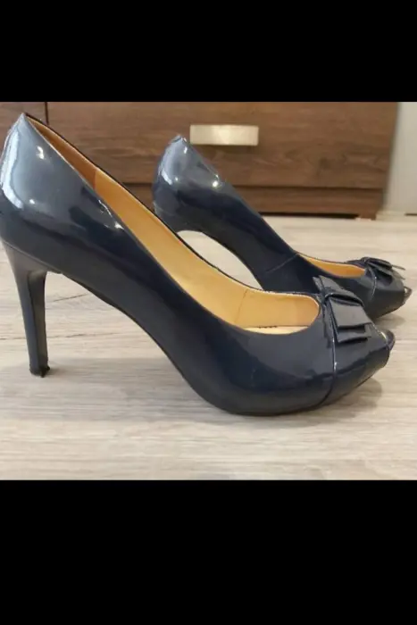 Zapatos tipo charol. Color azul oscuro tipo charol