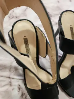 Zapatilla zara, nunero 39. 5.5 mex.Tacon 14 cm y pequeña plataforma se abrochan en el tobillo. Poco uso.