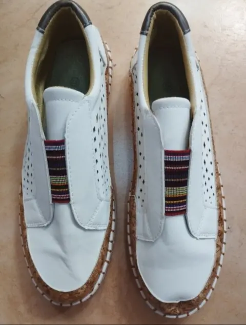 Preciosas alpargatas color blanco con detalles de corcho y elástico de colores completamente nuevas y súper cómodas.IMITACIÓN PIEL, forro sintético.UNISEX.