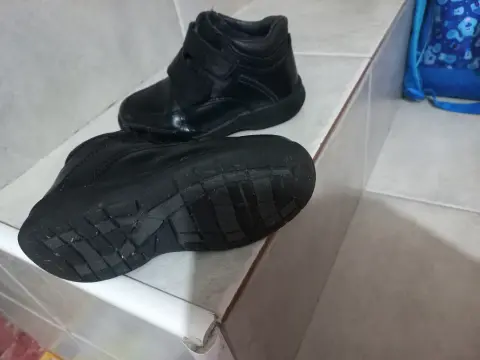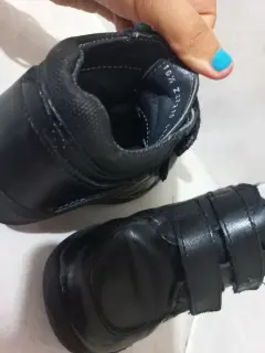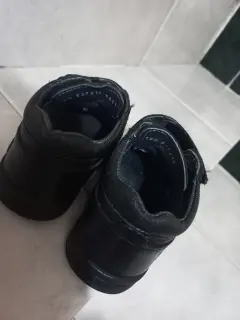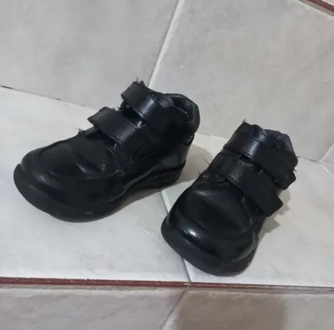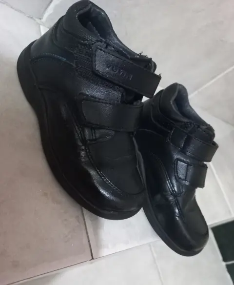 Zapato para niño marca Yuyin, color negro, número 16 1/2, material cuero y piel, son muy cómodos y ligeritos, incluso ellos mismos se los pueden poner y quitar por su fácil ajuste de velcro, suela alta en buen estado y super confiable de amortiguar cada paso de tu niño.