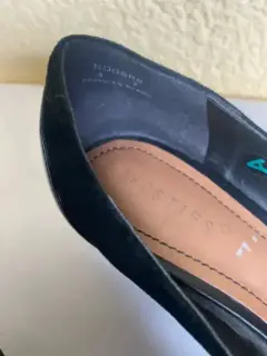 Hermosos zapatos con textura ante, charol y piel Mini tacón muy cómodo de 3 cmsLigeros raspones en las puntasPuede quedar hasta 4.5, caja original