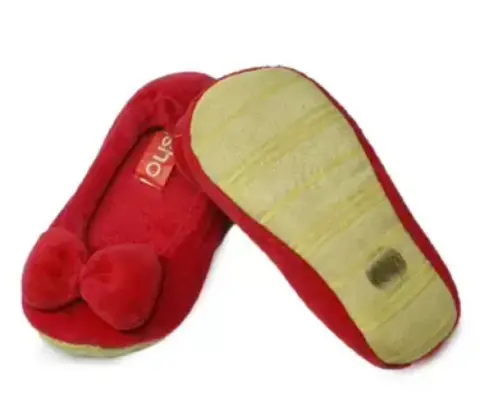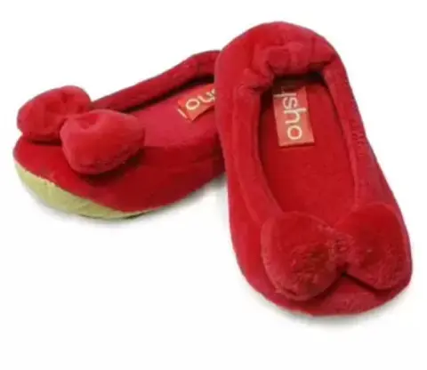 Pantuflas rojas con moño al frente talla 14 cms. Pantuflas rojas con moño al frente talla 14 cms de largo, la esquina de un moño está un poco sucio y en la planta está un poco sucias mínimo pero no las quiero lavar por que son nuevas