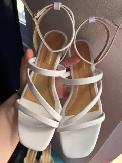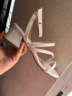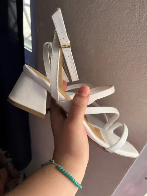 Sandalias con pequeño tacón de 4cm, en color blanco son talla 25, usadas en buen estado. Solo las puse en navidad jej✨🫣Te regalo $100 en tu primer compra en shoppiland.com con el siguiente código: YaretcoronaKvSa4
