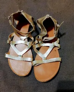 Todos talla5, los blancos y beige con poco uso, las sandalias doradas si están usadas pero aún le queda vida