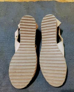 Trío zapatos. Todos talla5, los blancos y beige con poco uso, las sandalias doradas si están usadas pero aún le queda vida