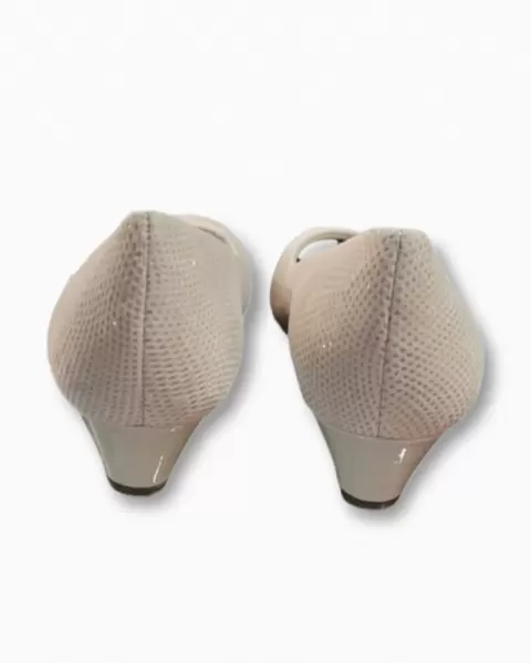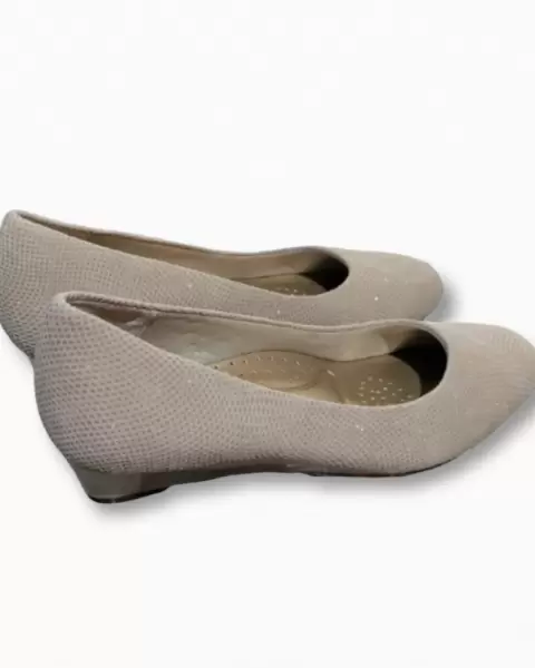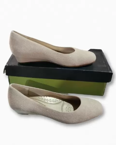 Zapatos de cuña de cuero Lauren para mujer Trotters, talla 4.5-M/ 7-Narrow US, color Nude/Beige, suaves y cómodos, capa EVA anti-impacto en la plantilla, plantilla acolchada de poliuretano metálico suave, diseño en relieve sin costuras, altura del tacón de 1 1/4", deslizamiento- resistente, suela de goma flexible, parte superior de tela tricot antimicrobiana, forro con respaldo de espuma, nuevos