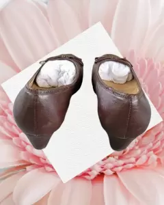Trotters Lylis Calssic Leather Pump para mujer, talla 3.5-Mex/6.5 US, color marrón, altura del tacón: 1 1/4", detalle frontal, suela de caucho sintético con un talón envuelto en color coordinado, plantilla de poliuretano acolchada, parte superior de cuero, estilo sin cordones, nuevo con zapato caja como mercancía de liquidación en buenas condiciones.