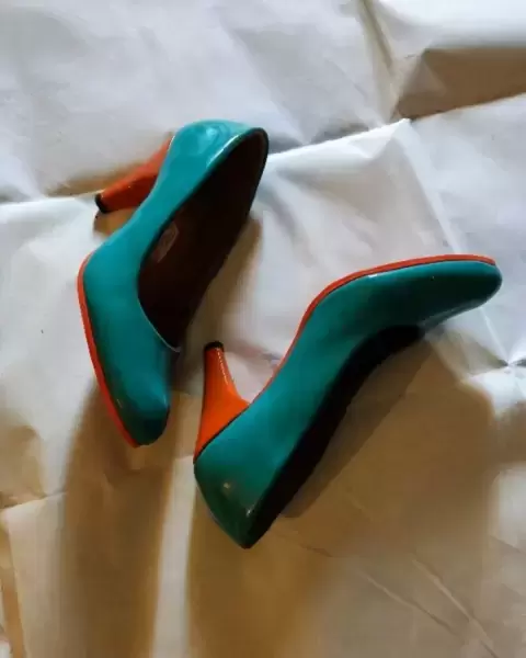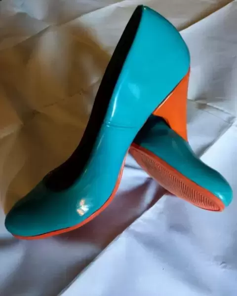 Hermosas zapatillas color turqueza con naranja tipo coral de charol en talla 5, una sola puesta.Urban Cklass.💕💕💕envío todos los días de lunes a sábado💕💕💕