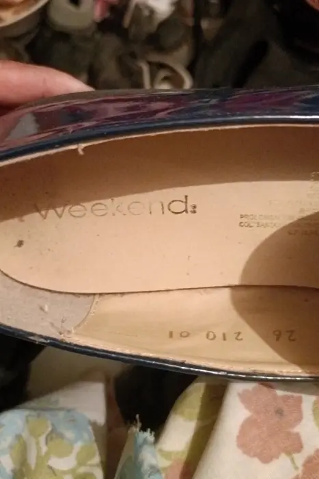 Zapatos de mujer puesto una sola vez marca weekend charol color azul marino talla 26 pregunta por Laura