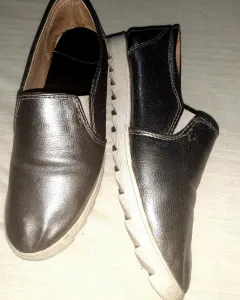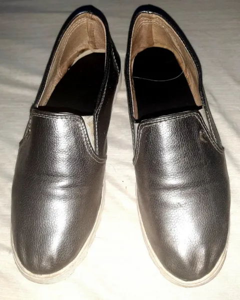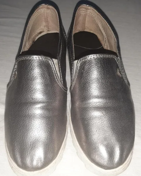 Zapato forro y corte100% piel. Preciosos zapatos, hechos artesanalmente. Color plata.Prácticamente nuevos.No tienen ningún detalle. Corte y forro 100% piel.De preferencia para pie delgado.Tardo en enviar de dos a tres días máximo.