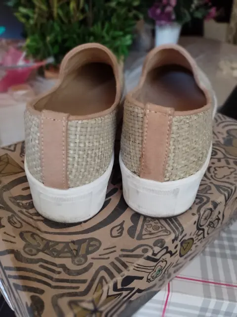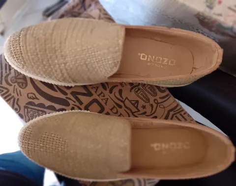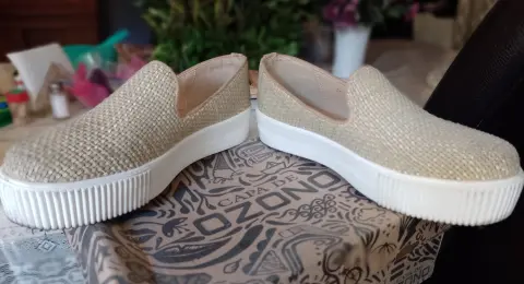 Zapato tipo choclo, comodo, el material es tipo tejido de colores claros, sin tacon