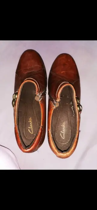 Zapatos Clarks tipo mocasín dama. Zapatos marca Clarks estilo mocasín de Dama con cierre en la lateral del empeine por dentro son acolchonados son número cuatro tengo en color café, el cierre lateral se abre y tienen decoración en el empeine también de una hebillaUtilizados en una ocasión