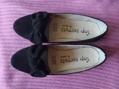 Zapatos cómodos. Zapatos de piso color negro, con moño en la parte superior, talla 2 con orma amplia a una talla 3, no se resbala