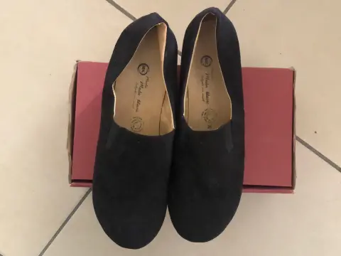 Zapatos de plataforma. Zapatos de plataforma color negro de ante y rayas tipo marinero tipo mocasín