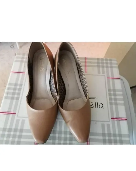 Hermosos zapatos de vestir bajos con tacon de 5 cm, color beige en excelentes condiciones.