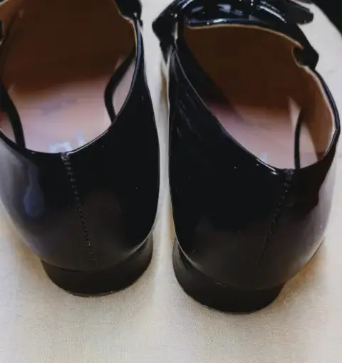 Hermosos zapatos de charol en color negro con barbas, tienen número 3.5 pero honestamente queda a un 3 viene reducido. Solo lo utilice una vez xq me apretaron.