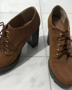Botines con plataforma. Botines del No25 Méx. de gamuza color café con plataforma y agujetas tacón de 10cm