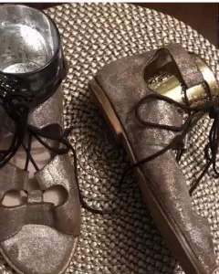 Bonitas sandalias gladiadoras marca Seychelles color café jaspeado con plateado ,súper bonitas.
