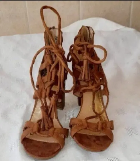 Hermosas zapatillas color marrón, material gamuza, talla 2 1 (2 1/2 ).tacón mide 9cm,son usadas, el único detalle es que la suela está pisada ,lo demás esta en buen estado.
