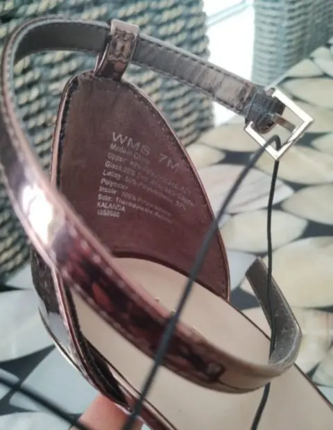 Elegantes zapatillas color rose gold tipo charol con detalle de piedritas incrustadas. Cinta para sujetar en el tobillo.Tacón del número 8. #4 (medida mexicana)Marcas 100% originales importadas de USA.