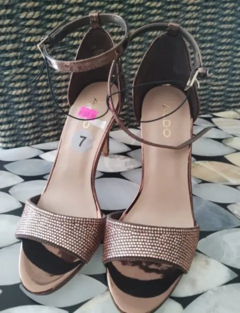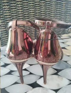 Elegantes zapatillas. Elegantes zapatillas color rose gold tipo charol con detalle de piedritas incrustadas. Cinta para sujetar en el tobillo.Tacón del número 8. #4 (medida mexicana)Marcas 100% originales importadas de USA.