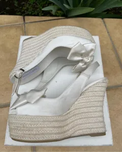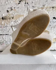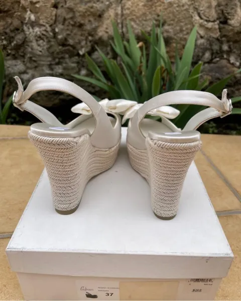Talla: 37 IMPORTANTE: miden 23.5 cm, color beige claro, 12.5 cm de alto. Tienen ciertas manchas pequeñas. Se envían con la caja original.