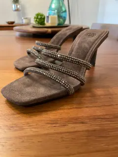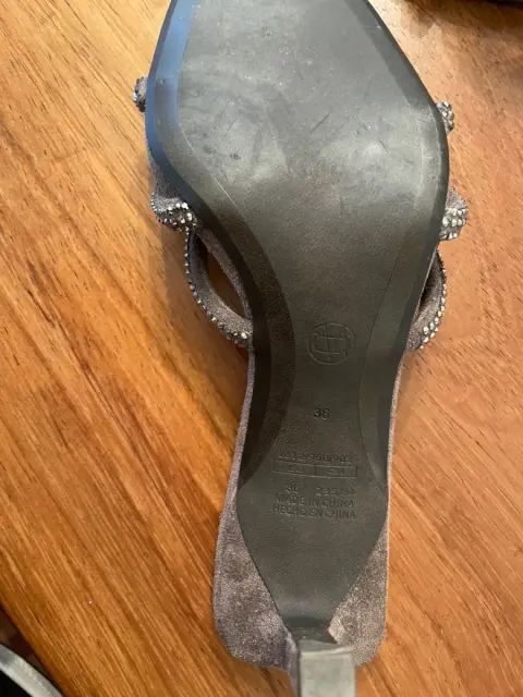 Zapatilla Massimo dutti. Zapatilla con 7 cms de tacón. Cubierta completamente en ante gris con aplicaciones . El zapato queda muy Justo a un número 23