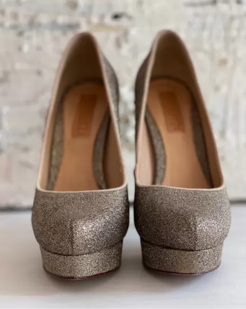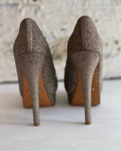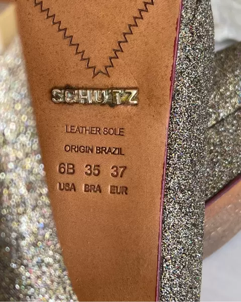 Zapatillas con plataforma Schutz. Zapatillas con plataforma color dorado (aunque trae combinación de colores) son muy prácticas y sirven casi con cualquier color.Talla: 23 (6 americano)Como referencia soy 3.5 y me quedan perfectos.El tacón mide 14 cm con todo y plataforma.Son zapatillas que han tenido uso, las conservo en buen estado y tienen detalles que se pueden apreciar en las fotos. Son detalles estéticos, no funcionales