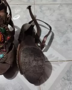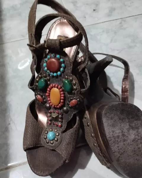Zapatillas con originales aplicaciones en pedrería y textura tipo serpiente muy originales y únicos ; 14 Cms en total de tacón ideales para estás fiestas tienen más de media vida de uso ya que se usaron muy pocas veces