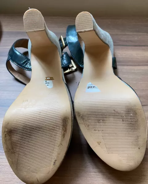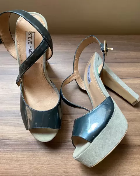 Zapatos Steve Madden de plataforma en dos colores azul verdoso y gris con textura de gamuza. Los zapatos fueron usados una vez tienen detalles por estar guardados pero estan en muy buen estado.