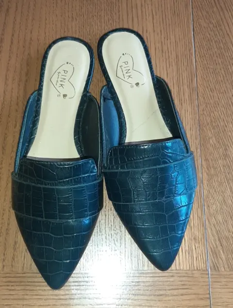Mules en muy buen estado, piel sintética cocodrilo, suela antiderrapante. Plantilla acolchada.