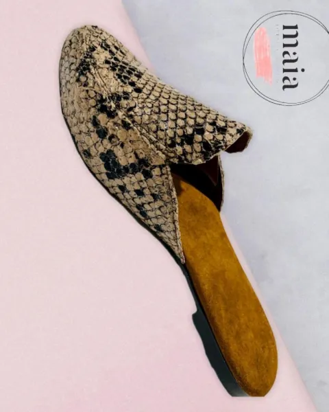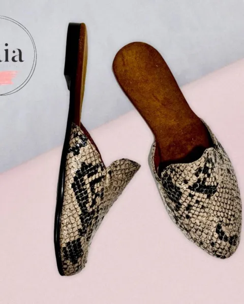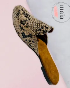 Mules con interior 100% piel. Mules Animal Print, con interior 100% piel.Estilo: Mules PitónMateriales suela: SintéticoMaterial exterior: Pintón SintéticoMaterial interior: 100% piel.Nuestras tallas van del 3 al 6 MX - MexicanoTallas: 23, 24, 25, 26.Horma: Normal Nuestras tallas vienen bien, son exactas pide el que regularmente uses.No manejamos números medios. Te explicamos los equivalentes.