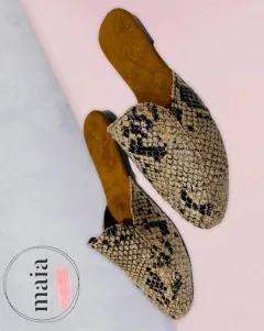 Mules Animal Print, con interior 100% piel.Estilo: Mules PitónMateriales suela: SintéticoMaterial exterior: Pintón SintéticoMaterial interior: 100% piel.Nuestras tallas van del 3 al 6 MX - MexicanoTallas: 23, 24, 25, 26.Horma: Normal Nuestras tallas vienen bien, son exactas pide el que regularmente uses.No manejamos números medios. Te explicamos los equivalentes.